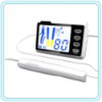 Description: ApexlocatorwiththefunctionofPulptesterApexlocatorhavethefunctionofApexlocatortooFeature:1.Patented design in tie type. The unit can be tied to the hand of dentist or to the holder of dental chair to contribute to the convenience of checking the changing data on the LCD. 2.Compact and stylishly thin in shape design. The dimension is only 120*79*22mm 3.Special detachable design in structural component to make sure that the function of apex locating and pulp testing are accurate. 4.It is equipped with rechargeable battery. 5.The accessories can be autoclaved to avoid cross infection. 6.Colored LCD display, adjustable volume of alarm. A:theTieApexlocatorcanbetied B:canbetiedontheDentalchair C:canbetiedontheuser'shand D:canbeputontheoperationdesk
